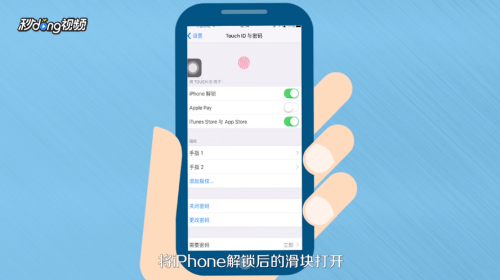 2点击“iPhone解锁”,将iPhone解锁后的滑块打开,点击“添加指纹”,即可开启指纹解锁。