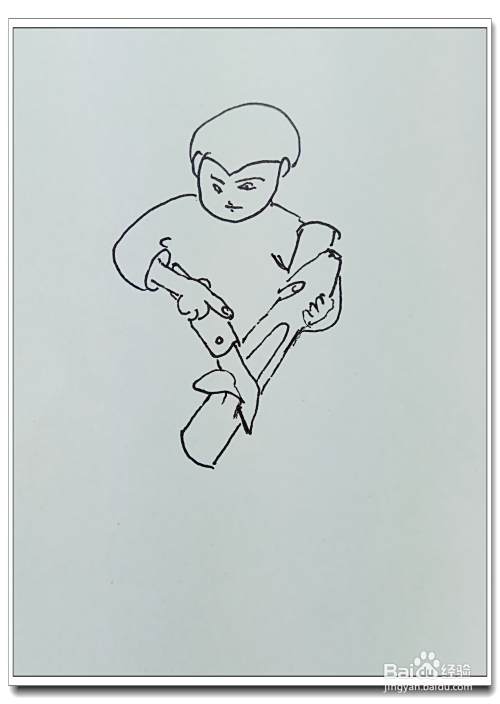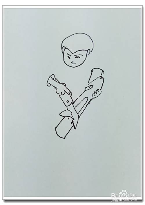 再用线条和曲线画出这个人的头部轮廓,并画出他的五官。