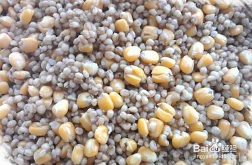 将玉米和小麦混合均匀,用水泡软后,再使用高压锅蒸煮15分钟。