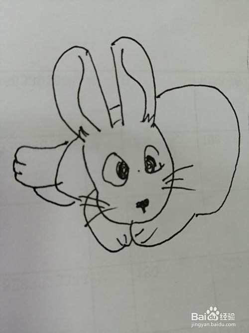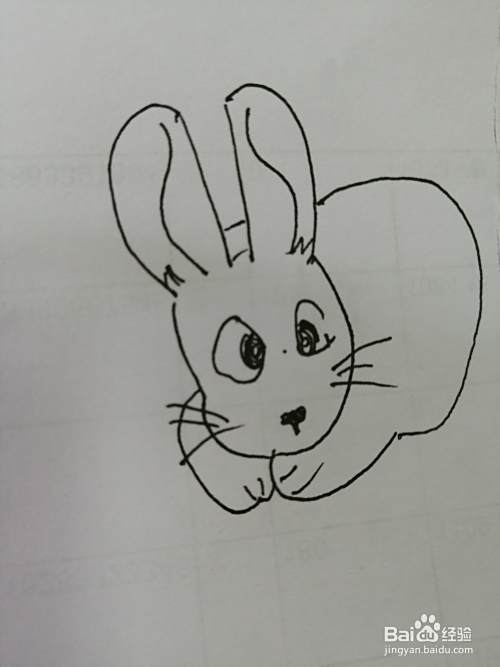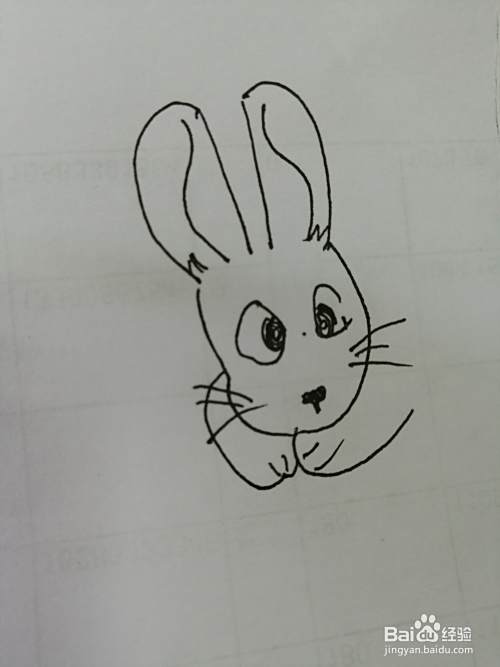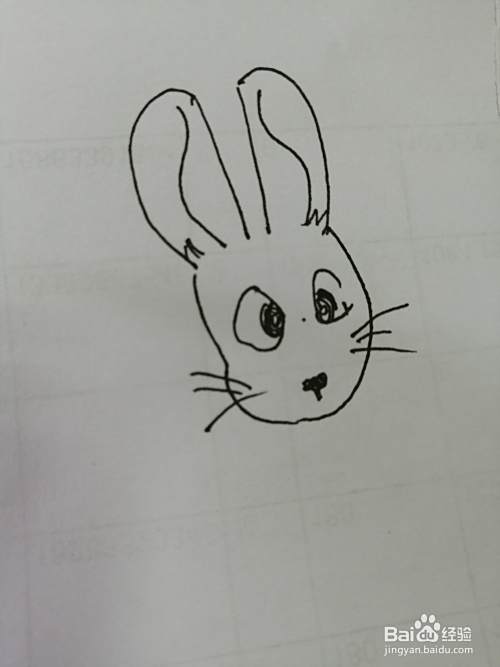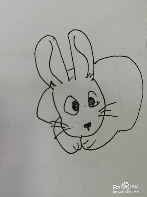 第四步,接着在可爱的小兔子的两只眼睛两边画出胡须。