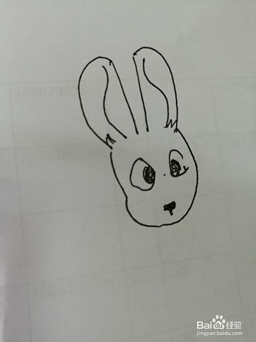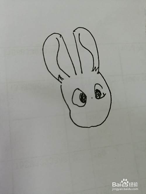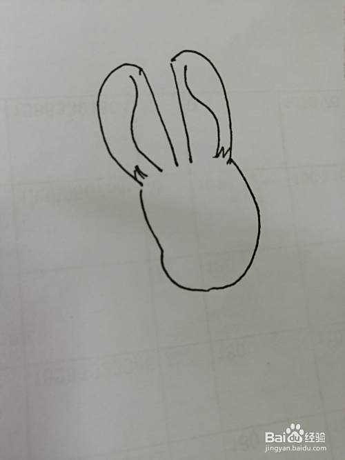 第二步,接着在两只长长的耳朵下面画出一个椭圆形的脸。