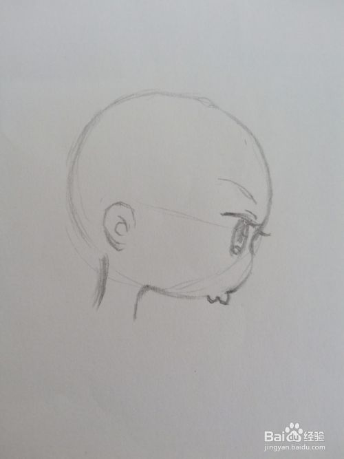 在圆的边边上修出人物的头型和脸型轮廓,然后再画出人物的五官和脖子。