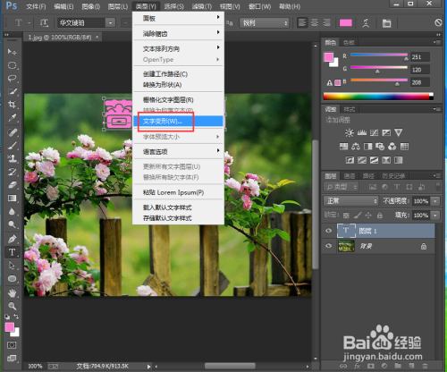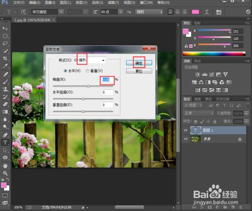 在艺术设计时,我们常需要给文字添加各种效果,下面来介绍一下怎样在ps中给文字添加扇形和投影效果。