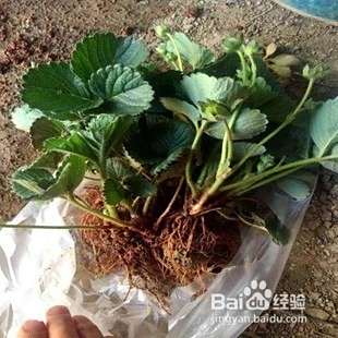 再把在市场买回来的花土,依次的放进花盆当中,注意放的时候要用手往里撒着放花土,因为这样的土会很松散,有利于草莓苗的根部生长,花土添到花盆的二分之一的时候,把草莓苗种下去,再依次的往花盆里加土,直到加到草莓的根部位置,放入准备好的松针,覆盖到上方就可以了,因为松针室酸性的,对草莓很有好处,最后浇一次性的定根水,记得要浇透,直至花盆底部流出水为止,这样草莓就种植完成了。
