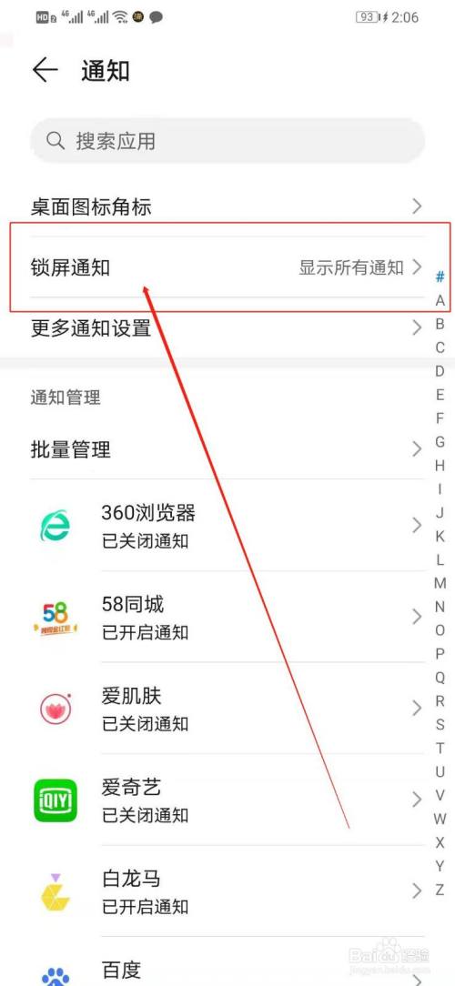 之后点击打开“通知”,在该界面找到“锁屏通知”选项,如图