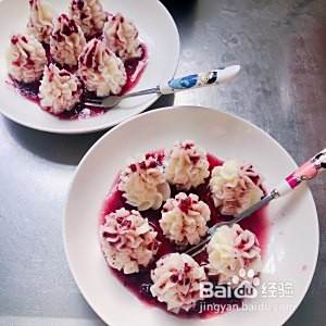 然后把山药泥挤在盘子里,再淋上蓝莓混合液就好啦,是不是特别简单呢