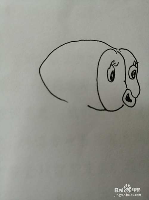 第一步,我们先把可爱的小鱼的椭圆形的头画出来,画法比较简单。