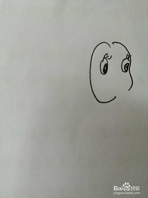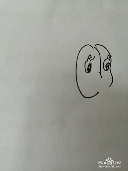 第二步,接着继续画出可爱的小鱼的两只可爱的大眼睛,小鱼眼睛画法比较简单。