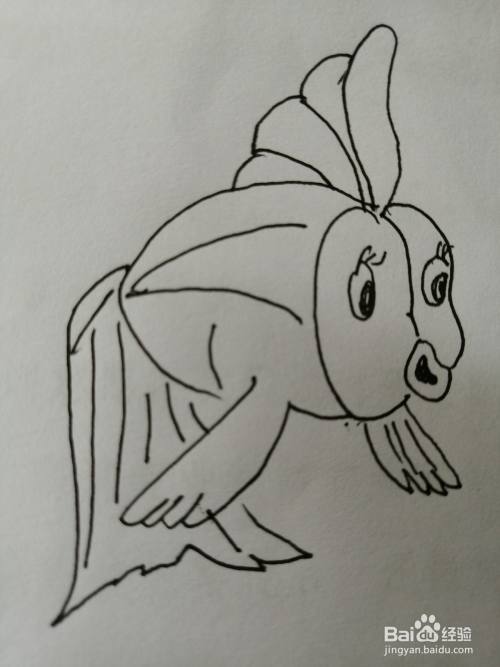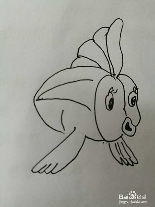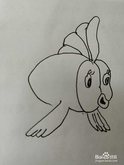 第五步,接着在可爱的小鱼的身体上面画出鱼鳍,注意上面鱼鳍纹路的画法。