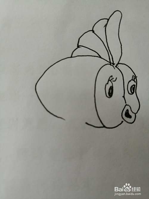 第四步,接着我们把可爱的小鱼的胖嘟嘟的身体画出来,画法比较简单。