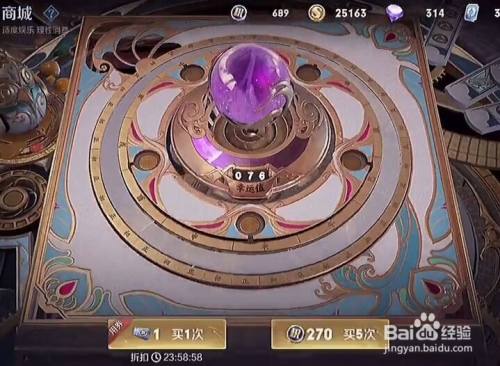 1.到积分夺宝界面,先用一次单抽,再加一次5抽。