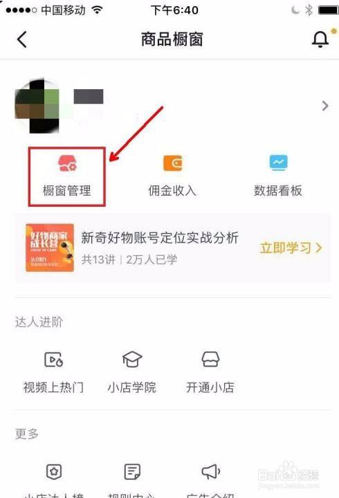 然后点击【橱窗管理】。