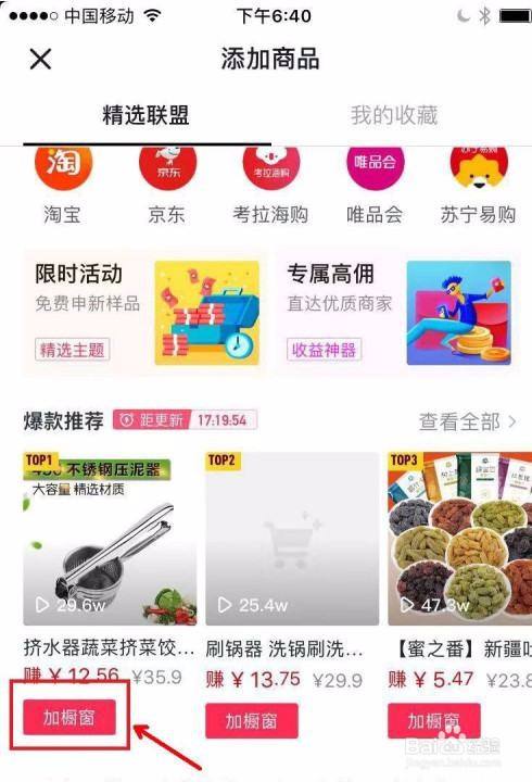 在这里选择并找到自己的商品,然后点击【加入橱窗】。