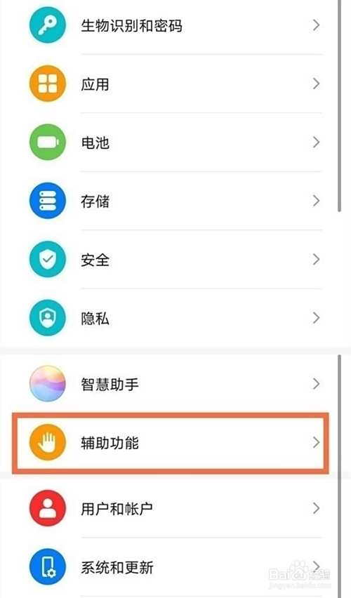 在手机设置菜单中点击【辅助功能】。