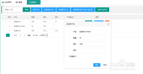 首先,软件先录入产品相关的数据,数量、规格等等信息,便于录入订单时快捷。