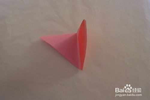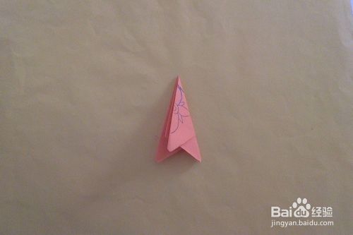 如图所示,把另一角部分向后反折,减少误差。再把材料压平对折。