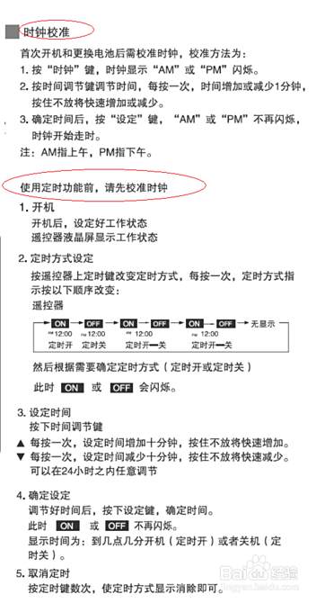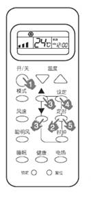 定时功能的设置:按定时开/关按键,遥控器显示ON/OFF,每按一次,时间变化。