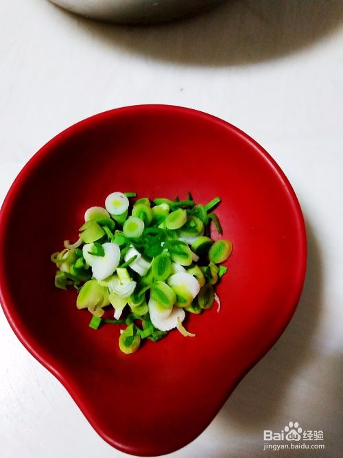 将芹菜叶用刀切的略小一点,蒜苗切小丁。
