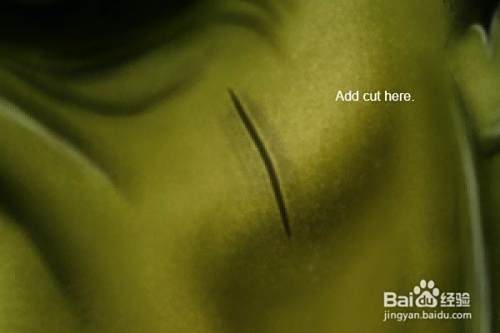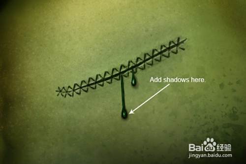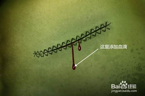 现在,我们将添加一些血液缝合切口。涂料血大小为10像素,颜色为#490707硬刷。选择您在本教程中创建“素描”刷,改变笔刷颜色为#ce9696并添加灯光血。改变画笔颜色为#36180e,并添加阴影血。现在添加对身体的血液一些阴影,给它一个自然的外观。从红色变为血液颜色为绿色创建一个新层,用颜色#093900填充它。右键单击该图层,然后选择“创建剪贴蒙版”夹层血液层,改变图层的混合模式为“颜色”。