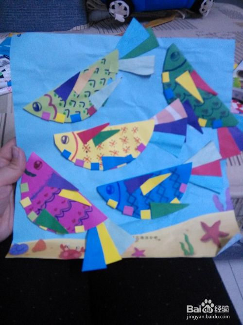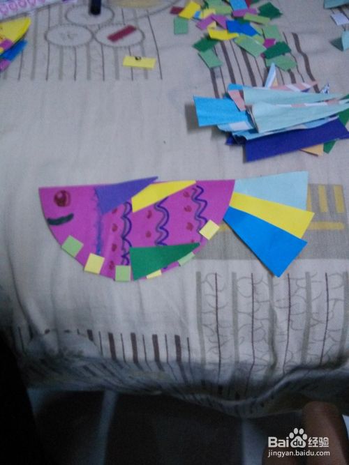 用双面胶把它贴到小鱼的鱼肚子上做修饰。