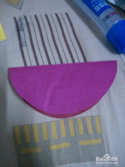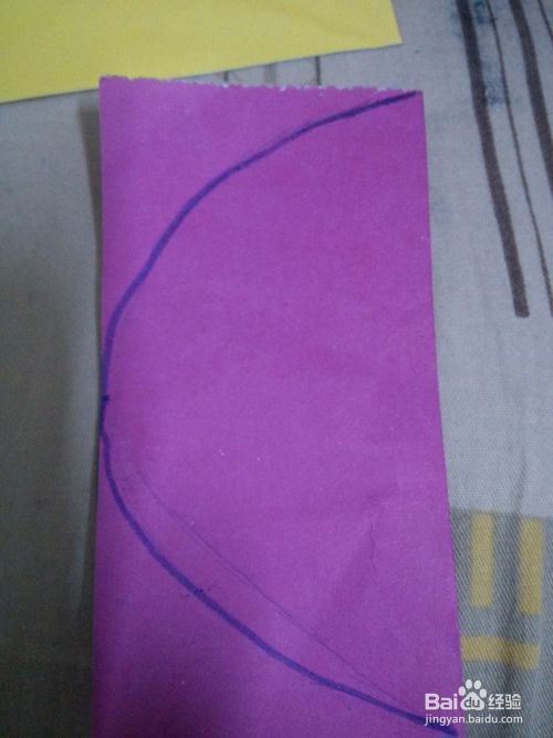 把正方形的彩色卡纸沿着中线对折,画出一个半圆形,再用剪刀把它剪下来。