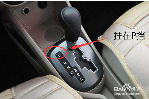 然后将挡位往前推到P挡上,一般是最上方那个挡位。