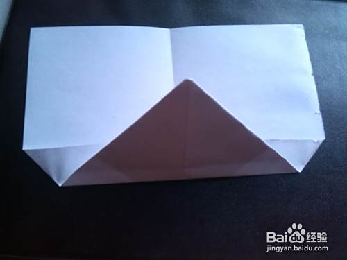将长方形折纸的长边对折,然后将两个角向中心对折。