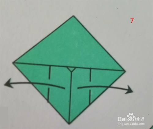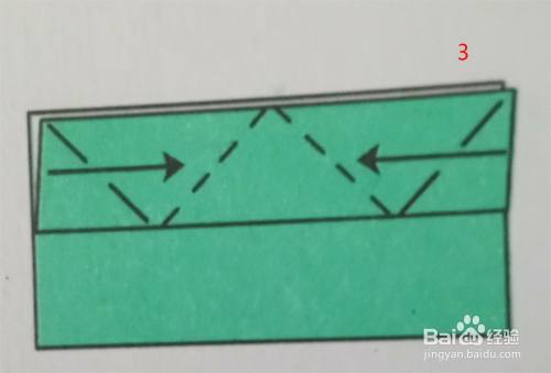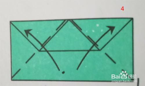 步骤3:按虚线所示朝箭头方向折叠成图4形状。如下图所示