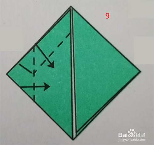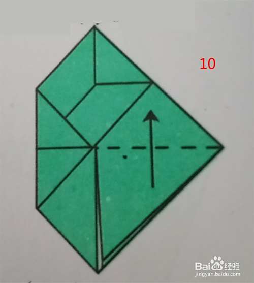步骤9:按虚线所示朝箭头方向折叠成图10的形状。如下图所示