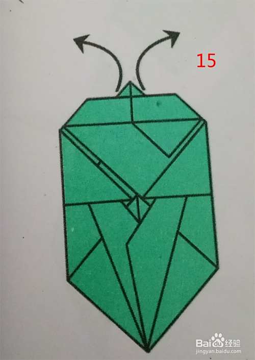 步骤15:沿箭头拉开折叠,效果如图16.如下图所示