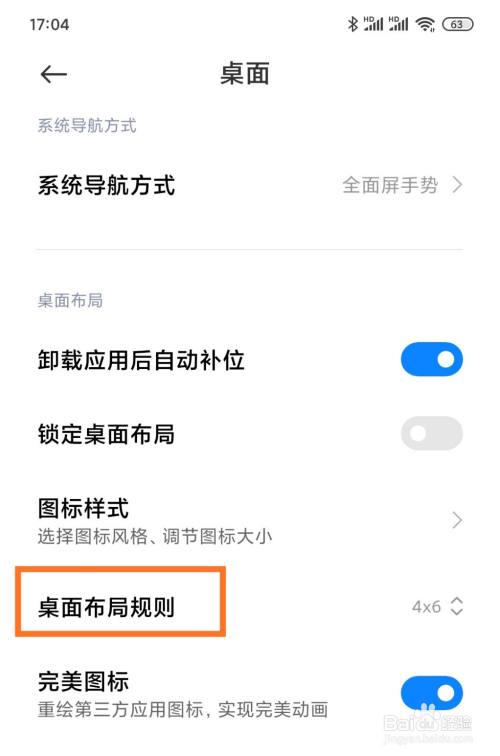 打开桌面设置界面,向下滑动,点击“桌面布局规则”。