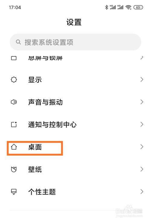 打开设置界面,点击“桌面”选项。如图所示。