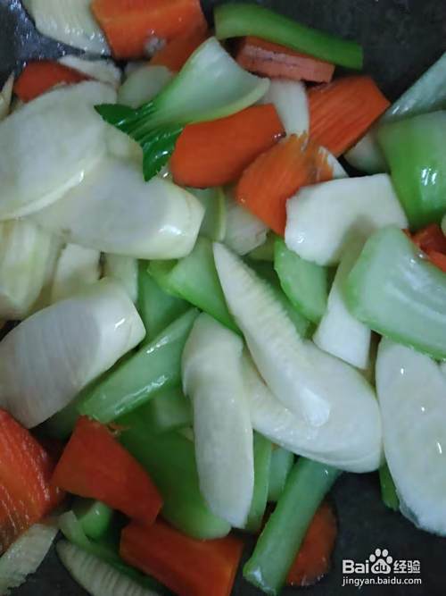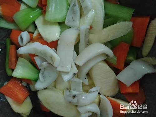 起油锅,依次加入油、植物原料、乌贼等,翻炒