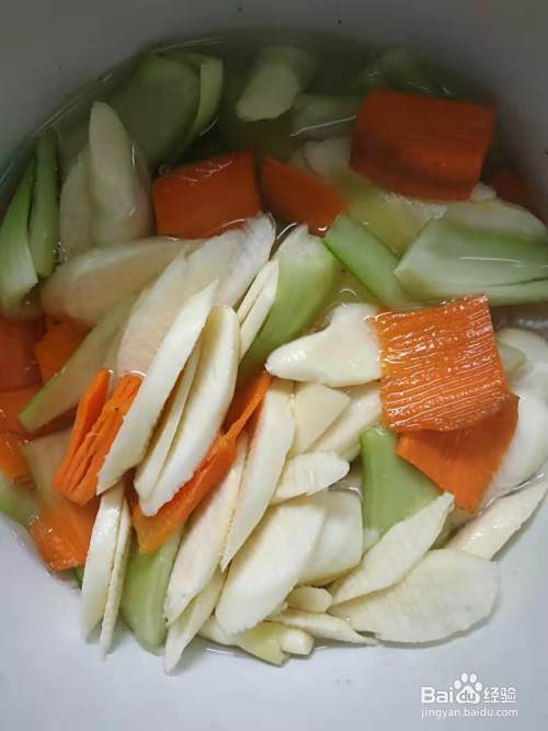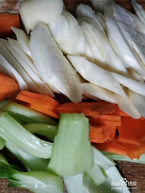 乌贼的肉,洁白光滑,切成小条,入沸水中也汆一下,刚才的沸水可以再利用哦
