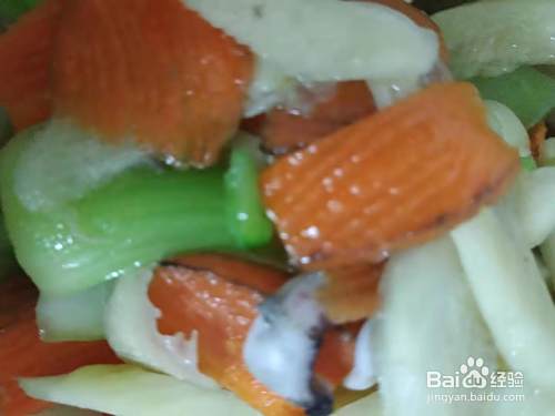 茭白、胡萝卜和乌贼混搭快炒,红白相间,再加点小葱,色泽漂亮,营养丰富,最关键的是美味而且不费心