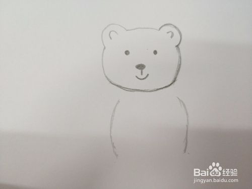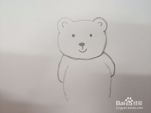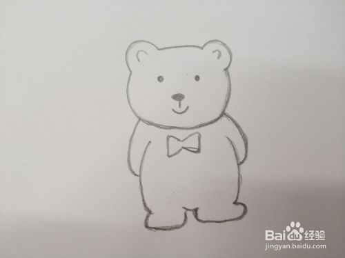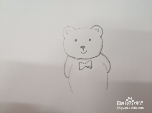 然后给小熊画上手,手在小熊的身体两侧,再在脖子下面画个蝴蝶结 。