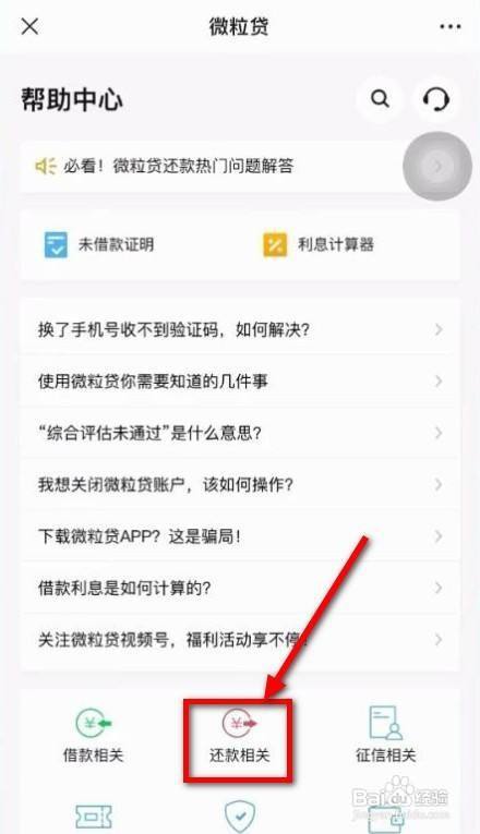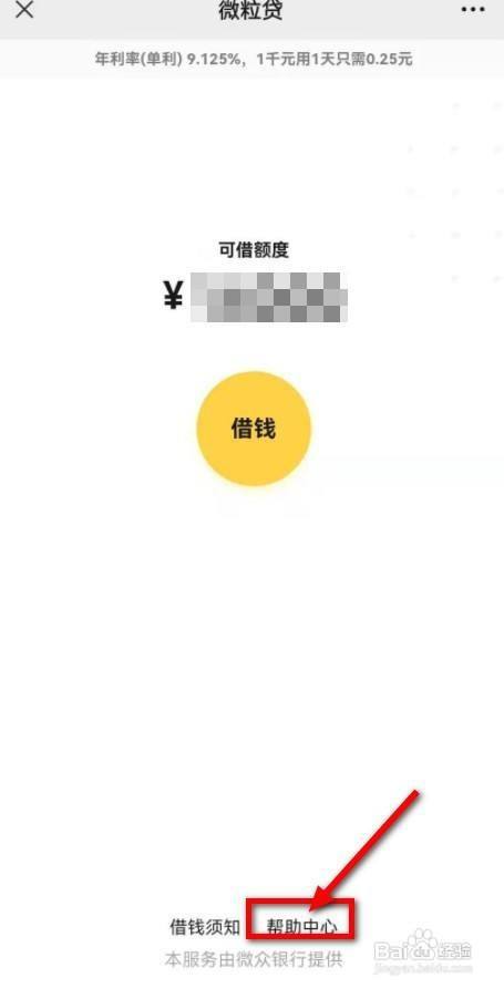 首先,从微信中打开微粒贷,点击底部的帮助中心。