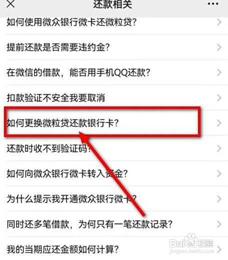 然后,点击如何更换微粒贷还款银行卡
