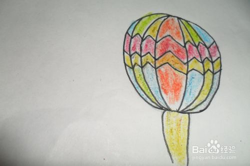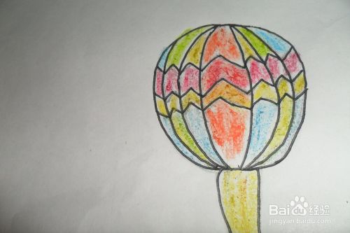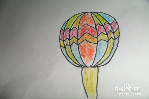 涂上喜欢的颜色。五彩缤纷的热气球就画出来了。