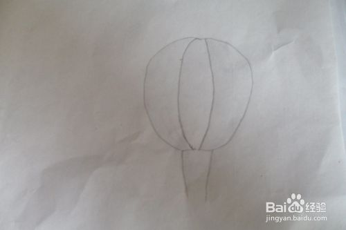 在球上找出中间部位,从顶端到底部画出两条弧线。