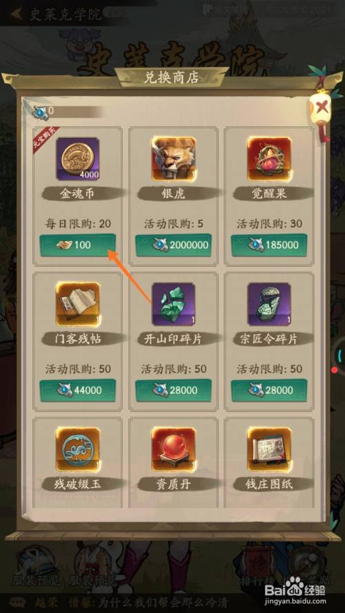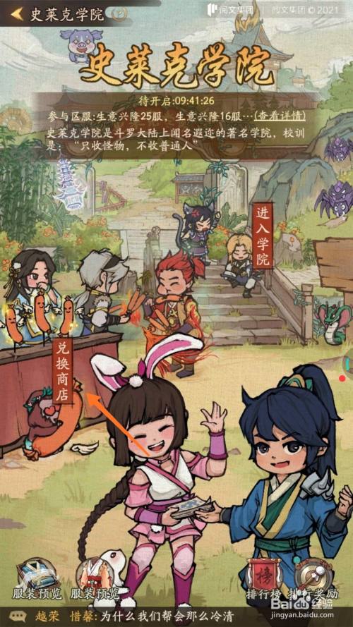 在打开的史莱克学院页面,点击其中的兑换商店。