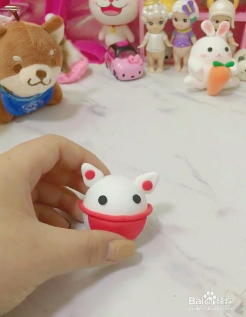 第三步:红色粘土取适量,做成小兔子的衣服,如图所示,精致又可爱