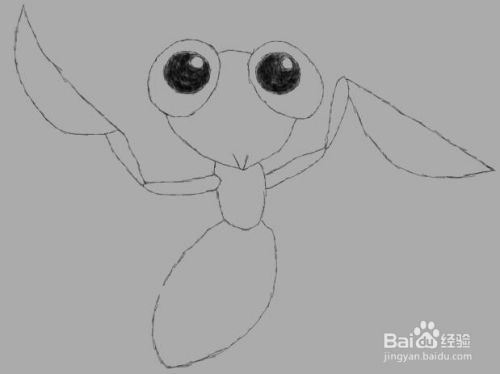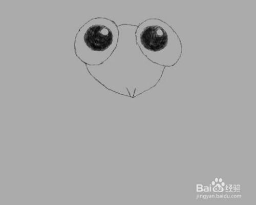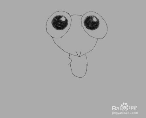 在眼睛的基础上画出螳螂的头部,并在头部下面画出螳螂的嘴巴,如图所示: