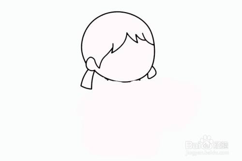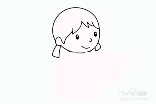 首先画出挑水的小女孩的头部和耳朵。