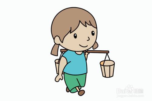 最后给挑水的小女孩涂上颜色,完成。