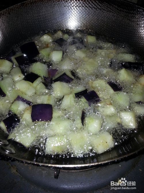 锅里放入较多的食用油加热到200度。油量要保证能漫过茄子。