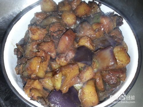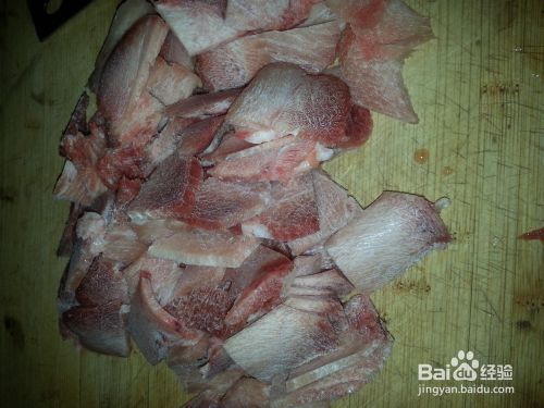 茄子洗干净切丁,1.5CM左右的。如果不喜欢吃茄子皮的可以去皮。,肉切片,用料酒、生抽淹一下。我用的家里冷冻的肉,口感不是很好。