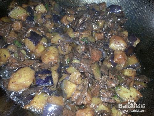 放入茄子翻炒,喜欢吃蒜的朋友可以在出锅的时候加入适量的蒜末。