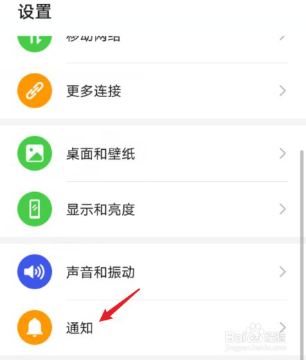 在设置界面,点击通知的选项。