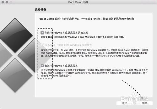 随后请选中制作启动 U 盘的所有选项,然后点击“继续”按钮。